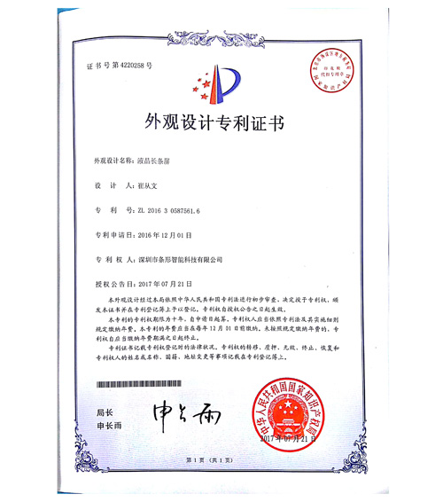 深圳市條形智能科技有限公司位于深圳市寶安區(qū)福永街道鳳凰社區(qū),正式成立于2016年04月,是一家專業(yè)從事顯示類電子產(chǎn)品研發(fā)、生產(chǎn)、銷售的國(guó)家高新技術(shù)企業(yè)。